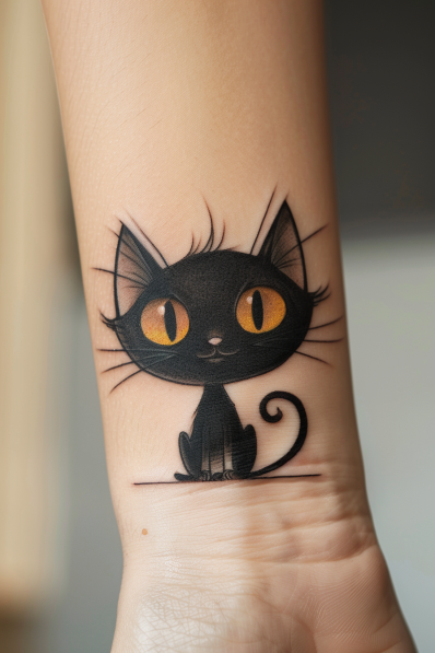 Adorable Coraline Cat Tattoo with Minimalist Charm