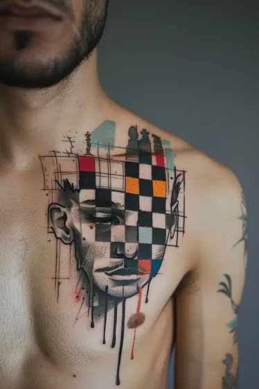 Salvador Dali Chessboard Portrait Chest Tattoo