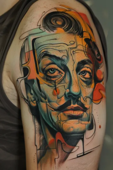 What makes this Salvador Dali tattoo so jaw-dropping for me is how lifelike it is, yet it still feels totally artistic. It s dramatic and theatrical, which just feels so right for DalÃ. I love that it honors his real face while still giving off those classic surreal vibes through color and flow. It s not just a tribute, it s a full-on masterpiece. If you want something bold, brilliant, and unmistakably DalÃ, this one checks every box.