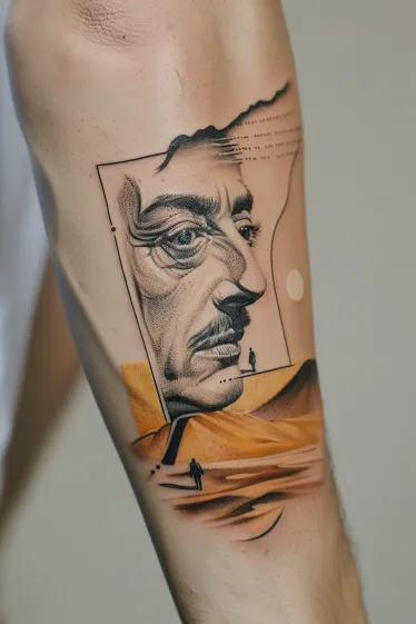 Salvador Dali Portrait Desert Tattoo