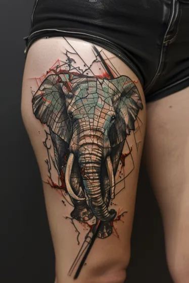 What I love most about this Salvador Dali tattoo is how it blends strength with surrealism. The elephant is majestic and grounded, but the broken shapes and unexpected linework make it feel like it s from a dream or a painting that escaped reality. It s the kind of piece that makes you feel empowered just looking at it. Plus, the thigh placement gives it so much space to really shine. If you re into fierce, artistic tattoos that don t follow the rules, this one is a total showstopper.