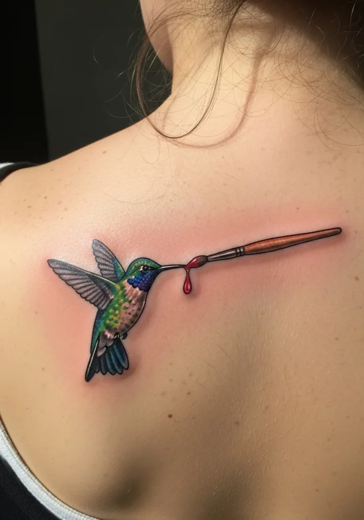 Hummingbird With Paintbrush Tattoo