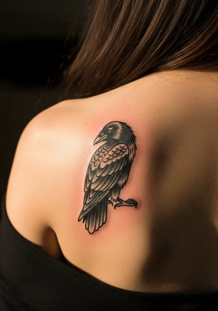 19 American Traditional Raven Tattoos With Dark Elegance