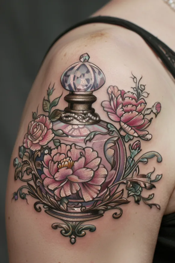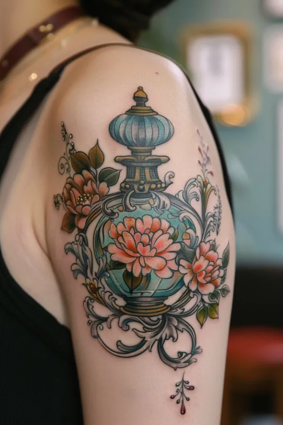 Victorian Perfume Bottle and Floral Tattoo