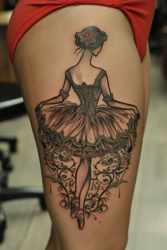 Victorian Ballerina Thigh Tattoo