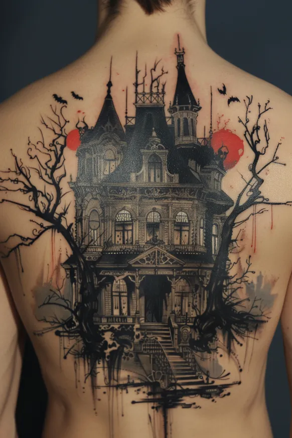Victorian Haunted Mansion Back Tattoo