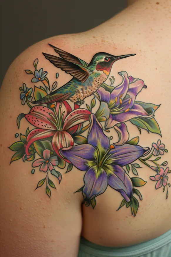 Victorian Hummingbird and Lily Tattoo