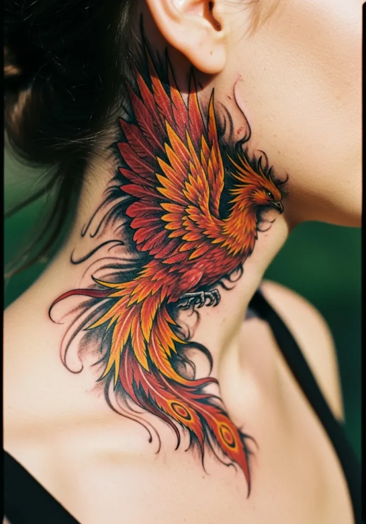 There s something so captivating about the symbolism here. For me, it represents transformation and power, and the neck placement gives it that daring energy. It s not just a tattoo, it s a declaration of fearlessness.
