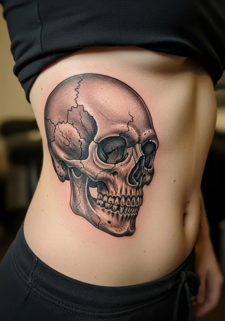 I love rib tattoos because they always feel personal, and this skull has such a powerful presence. The realism is stunning, and the way it follows the body s lines makes it even more striking. It feels meaningful, artistic, and full of confidence.