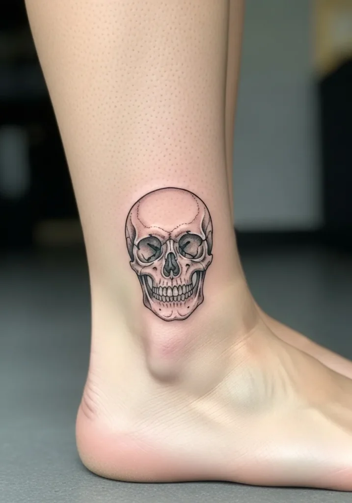 I adore ankle tattoos because they feel like a little secret, and this skull has such a charming personality. It is small enough to stay delicate but detailed enough to draw attention. It feels like the perfect blend of bold tradition and modern style.