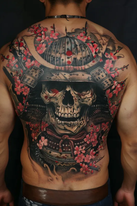 Fearsome Samurai Skull Back Tattoo