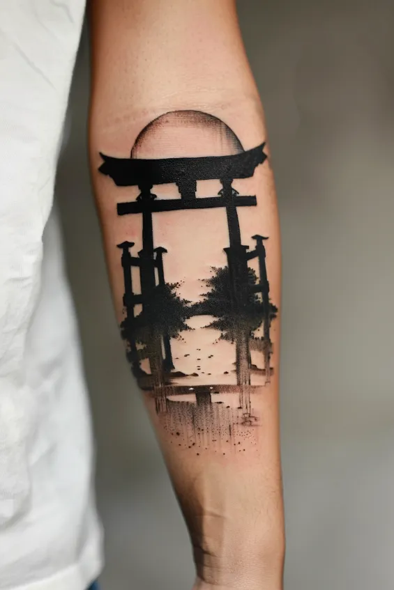 Mystical Torii Gate Forearm Tattoo