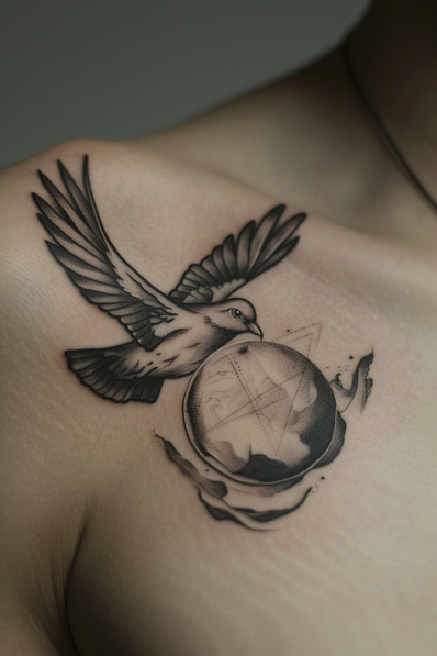 Dove with Globe and Geometric Elements Tattoo