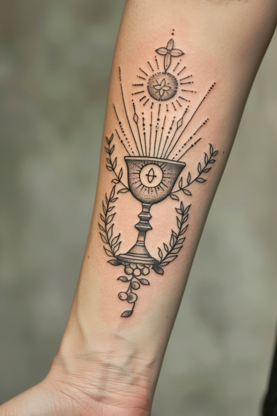 Holy Chalice and Eucharist Tattoo with Radiant Details