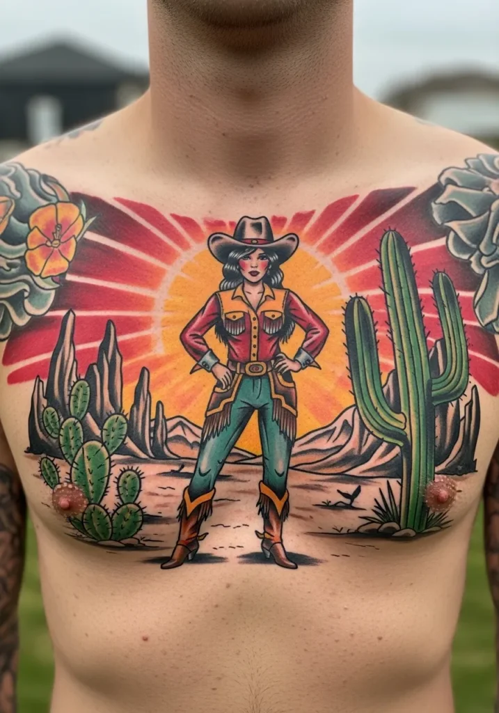 Desert Cowgirl Chest Tattoo