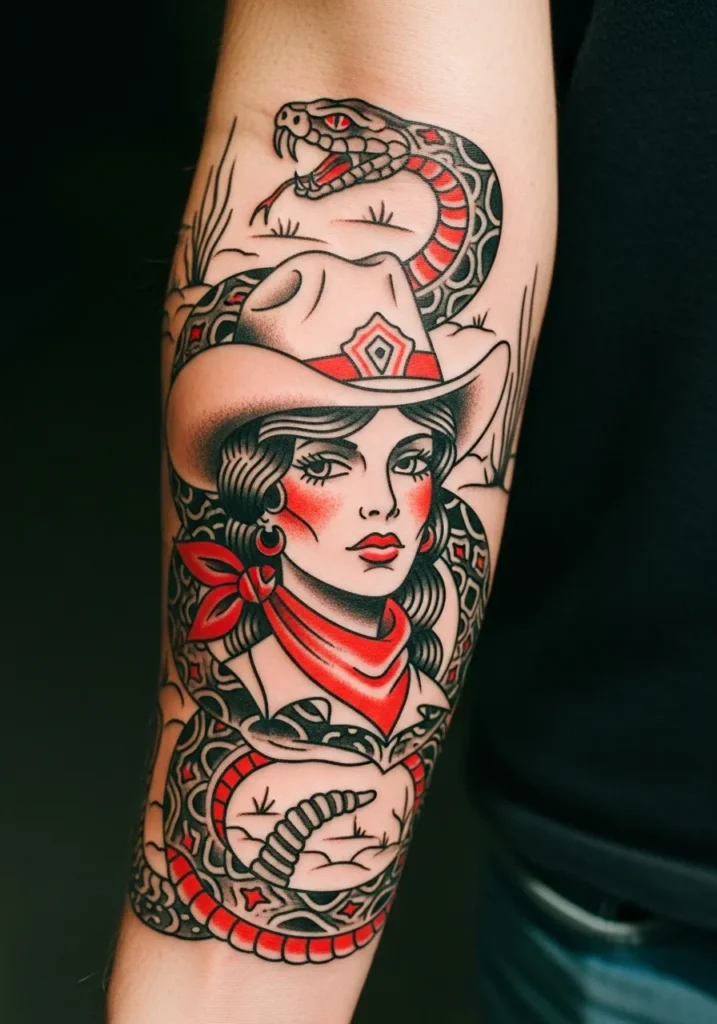 Cowgirl and Snake Tattoo