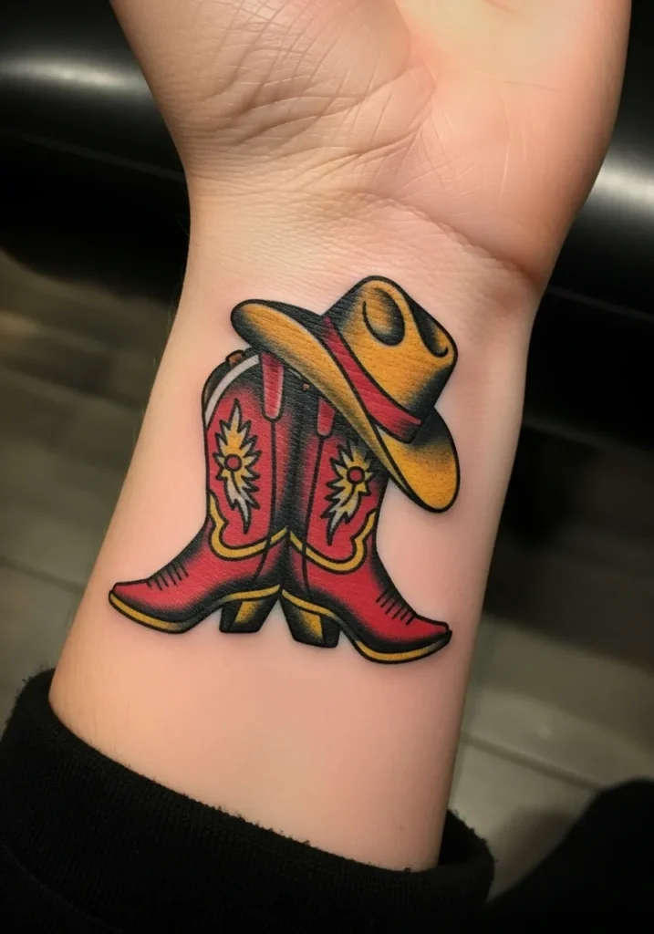 Cowgirl Boots and Hat Wrist Tattoo