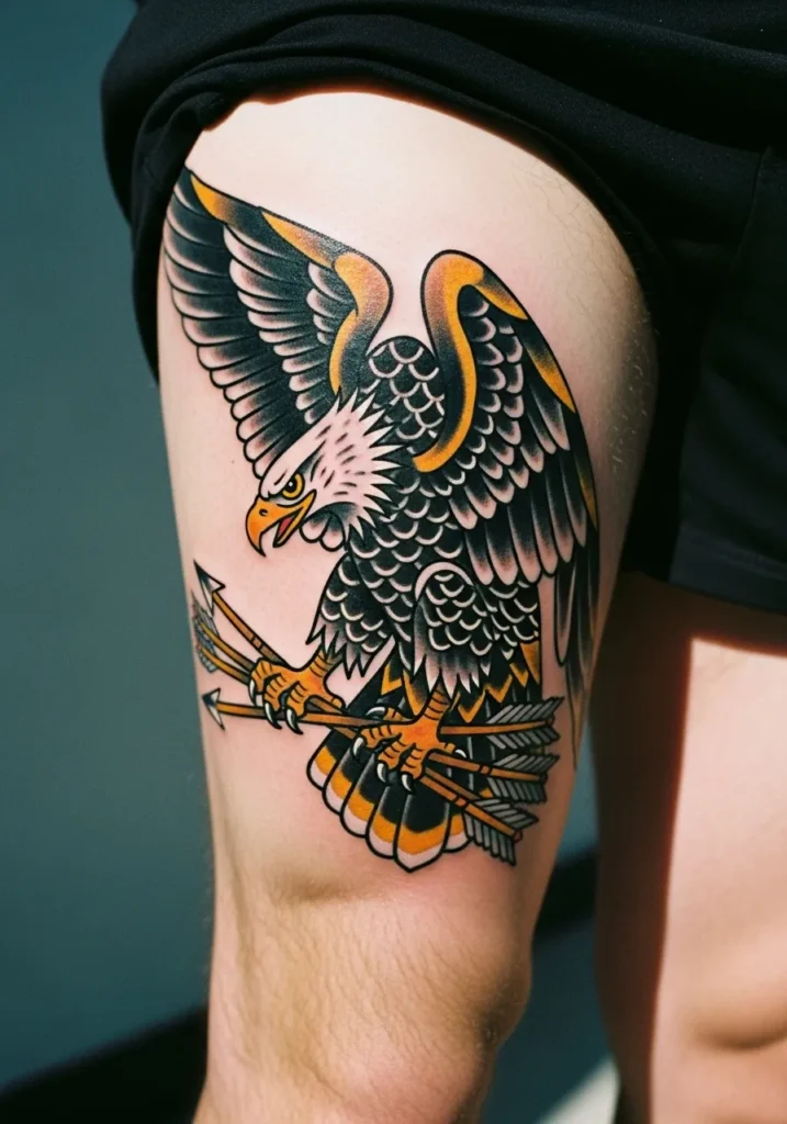 Eagle with Arrows Thigh Tattoo