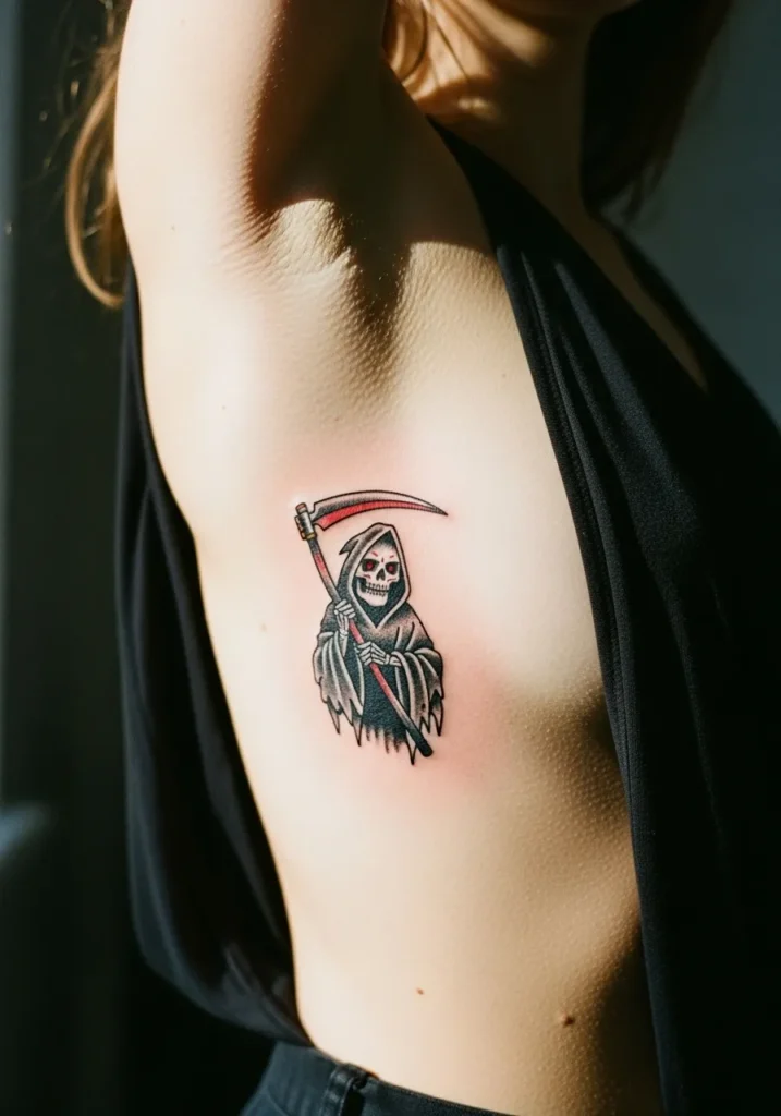 Small Grim Reaper Rib Tattoo