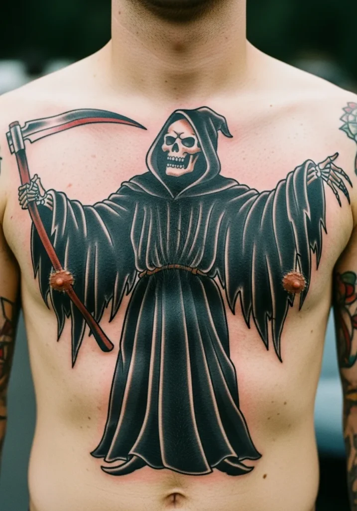 Large Grim Reaper Chest Tattoo