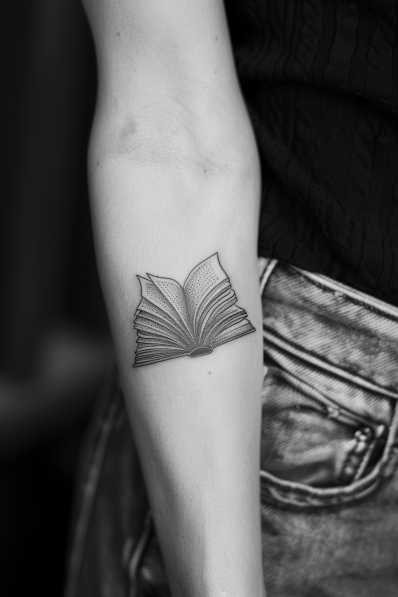 Minimalist Open Book Forearm Tattoo