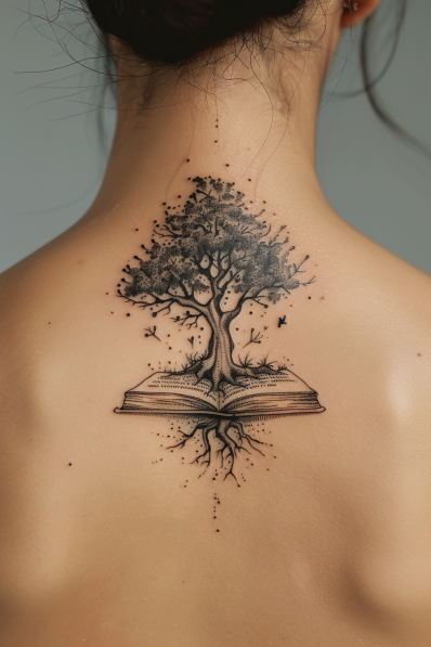 Tree of Knowledge Growing from an Open Book Tattoo