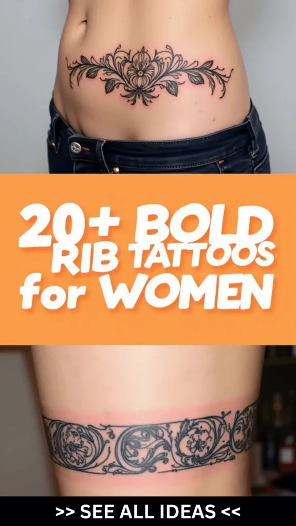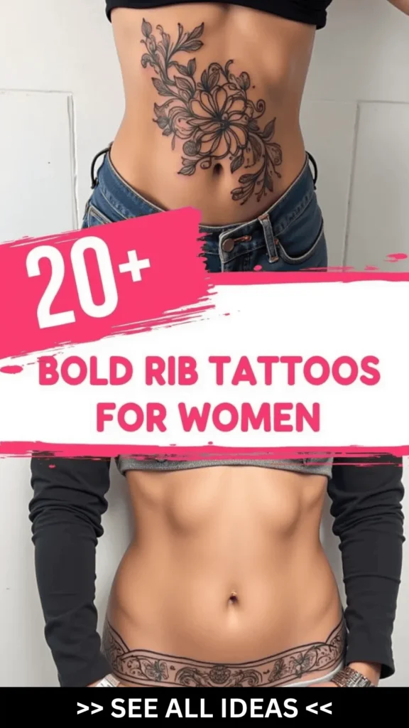 Rib tattoos are a bold choice for women who want a unique and beautiful design. They can be hidden or shown off, depending on your outfit. These tattoos follow the natural curves of the body, creating a stunning effect.