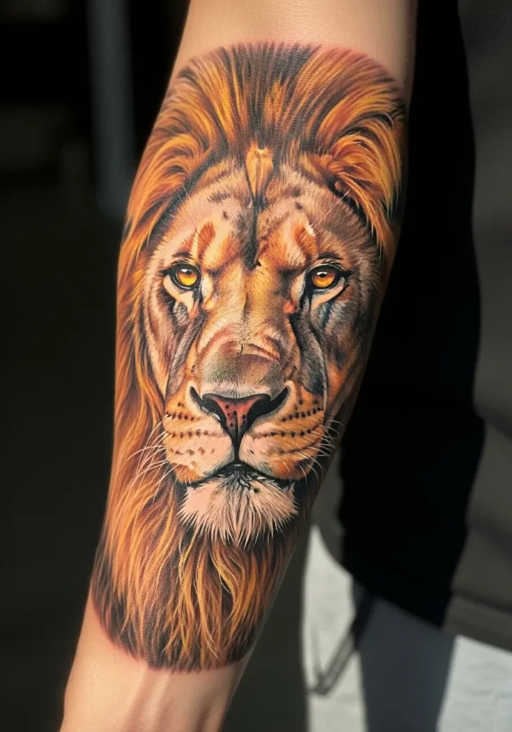 Golden Lion Forearm Tattoo