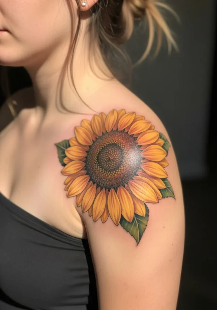 Bright Sunflower Shoulder Tattoo