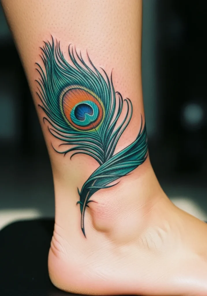 Peacock Feather Ankle Tattoo