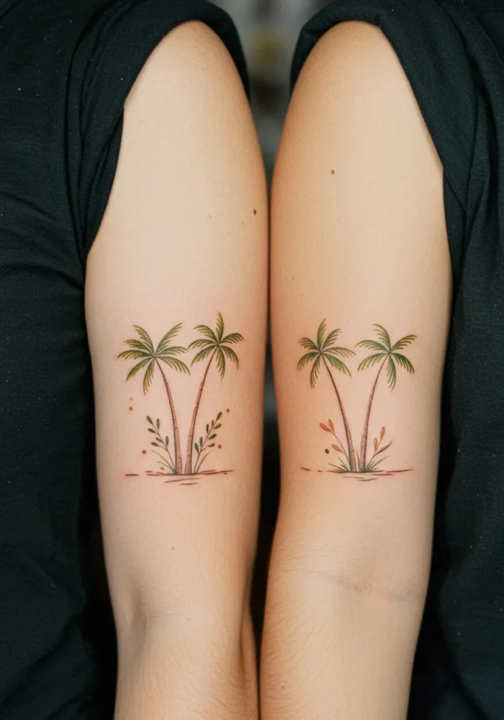 Palm Tree Fine Line Tattoos for Mother Daughter