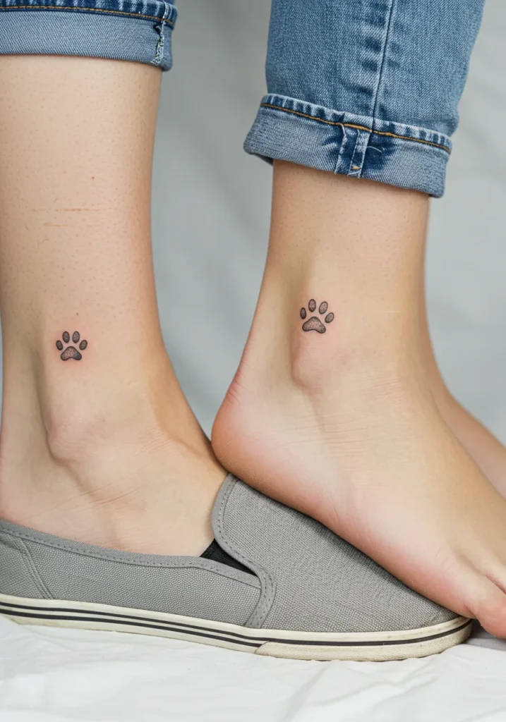 What I love about this tattoo is its simplicity and the meaningful connection it represents. Paw prints are such a sweet, heartfelt symbol of companionship, loyalty, and love. These tattoos have just the right balance of detail and minimalism, making them subtle but striking. Plus, the placement on the ankle gives the design a personal touch that feels intimate and thoughtful. It s one of those designs that makes you smile every time you see it, and it s perfect for a mother and daughter who want a meaningful tattoo that s easy to wear but packed with sentiment.