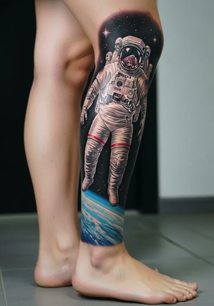 I adore how this tattoo makes you feel weightless just looking at it. It s more than a space theme it s about curiosity, bravery, and chasing something beyond reach. It feels peaceful yet powerful, like a quiet tribute to exploration and wonder.