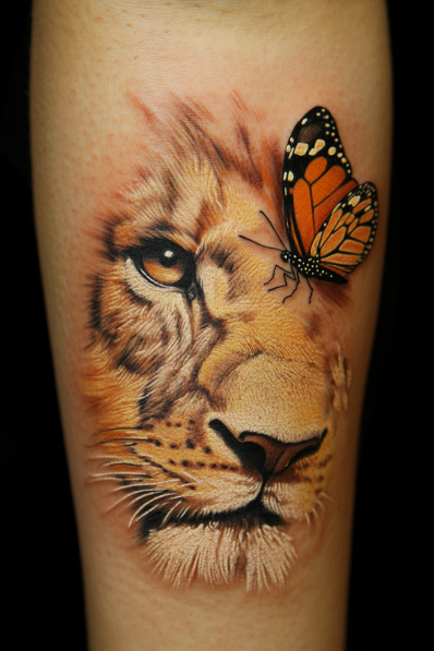 Realistic Leo and Butterfly Tattoo with Soft Details