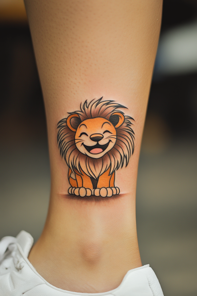 Adorable Cartoon Leo Tattoo with Playful Charm