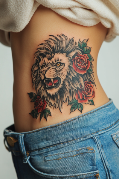 Fierce Leo Tattoo with Roses