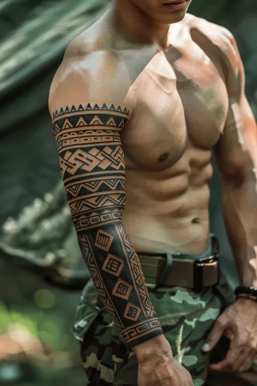 I can t get over how powerful this tattoo looks. The way the patterns wrap around the arm makes it feel almost like a suit of armor, radiating strength and confidence. There s something about the balance between bold black ink and the skin s natural tone that makes it impossible to look away. It s the kind of design that doesn t just complement the body it transforms it into a living, breathing work of art.