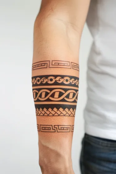 There s something about forearm band tattoos that just screams confidence. I love how this one keeps things minimal yet powerful, making a statement without overpowering the arm. The precision in the design is absolutely mesmerizing, and the way it hugs the forearm gives it a sleek, warrior-like feel. This is one of those tattoos that effortlessly blends tradition with modern style, which makes it even more impressive.