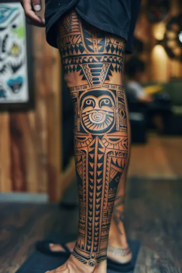 Polynesian Full Leg Tattoo with Traditional Symbols