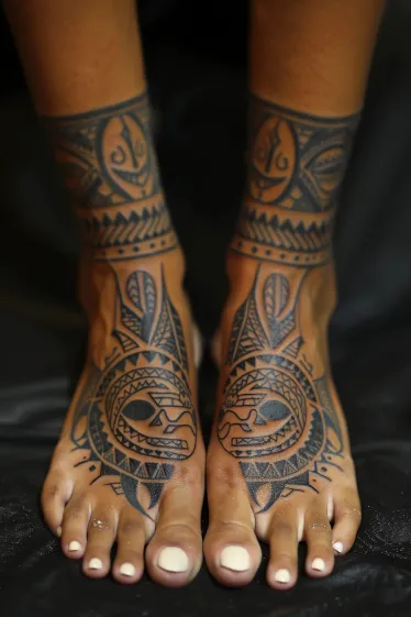 I absolutely love how this tattoo balances elegance with strength. There s something so bold yet refined about the perfectly mirrored patterns across both feet, almost like a visual rhythm that feels so intentional and artistic. This is the kind of tattoo that commands attention in the best way possible. It s a statement of heritage, culture, and individuality, and honestly, I can t get enough of how stunning it looks on the skin. If you re after something striking yet deeply meaningful, this is definitely one for the inspiration board!