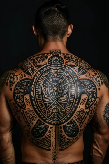 Polynesian Full Back Tattoo with Sacred Turtle Symbol