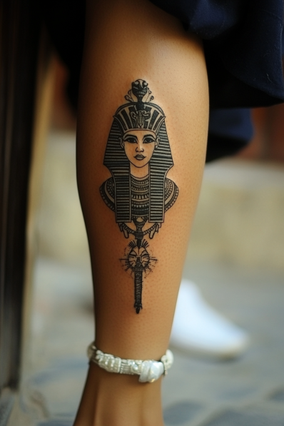 I really like how this tattoo honors one of history s most admired queens. It s regal yet understated, making it perfect for someone who wants to celebrate feminine strength and wisdom. The placement on the calf works well, drawing attention while remaining tasteful. It s the kind of design that speaks volumes about both your appreciation for history and your eye for timeless elegance.