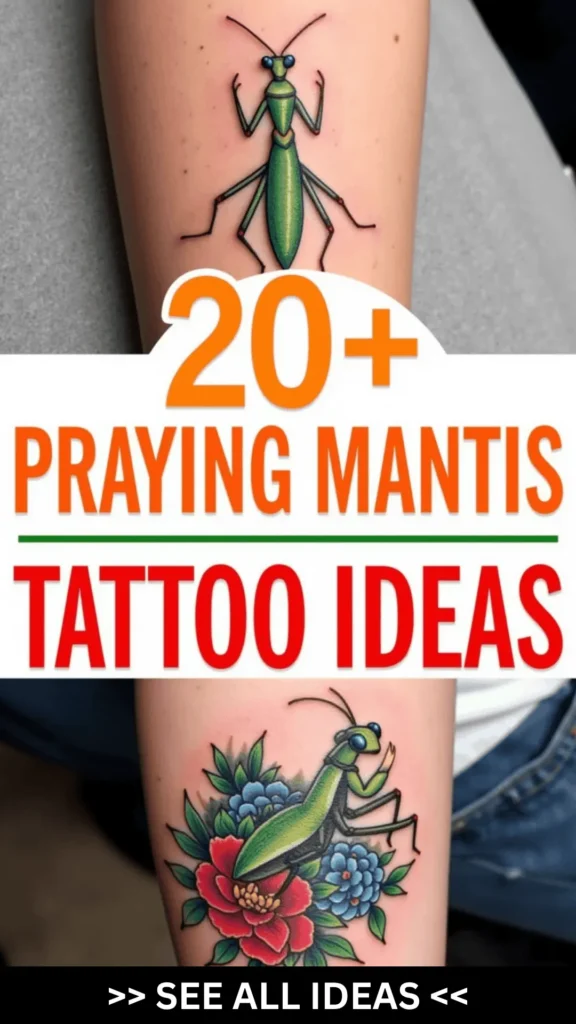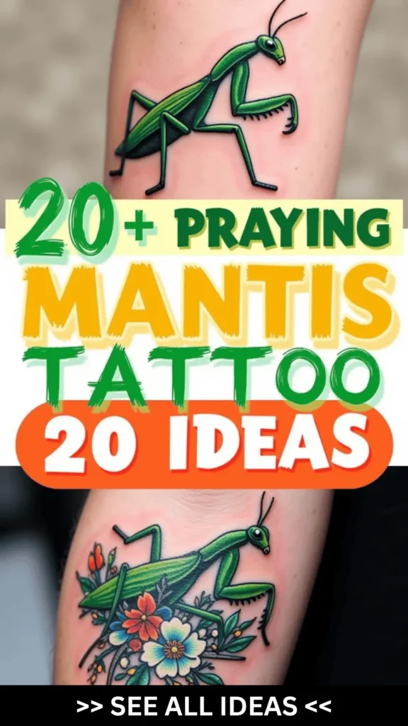 Praying mantis tattoos are all about unique style and nature. They combine the beauty of the insect with the symbolism of patience, calm, and strength.