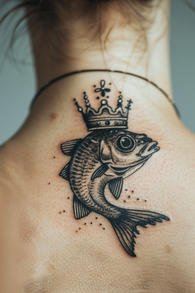 I absolutely love how this tattoo turns a humble sardine into a ruler of the sea! It s quirky, creative, and has such a fun personality. The contrast between the realistic fish and the ornate crown gives it an almost storybook-like charm. This is perfect for someone who s got a sense of humor, loves marine life, or just wants a tattoo that s completely original. Long live the sardine king!