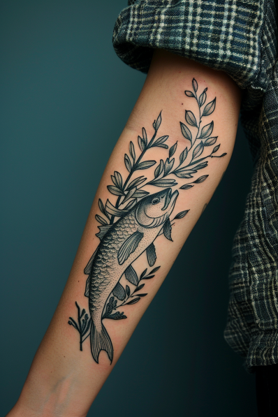 I absolutely adore how this tattoo combines marine life with a botanical vibe it s like an ode to the beauty of land and sea. The branches give the design a fresh and organic feel, making it stand out from traditional fish tattoos. It s artistic, unique, and just the right amount of intricate without being overwhelming. If you re into nature-meets-ocean themes, this one s a winner in my book!
