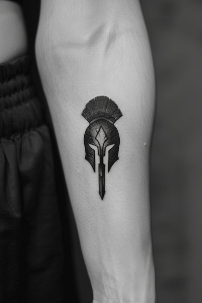 I think this tattoo is awesome because it proves that sometimes, less really is more. The minimalist style makes it versatile and easy to pair with other tattoos, or it can stand alone as a statement piece. It s like a quiet nod to the warrior spirit without being overly flashy. Plus, the forearm placement makes it visible enough to catch the eye without being too overwhelming. If you re into the Spartan theme but want to keep it low-key, this design nails it.