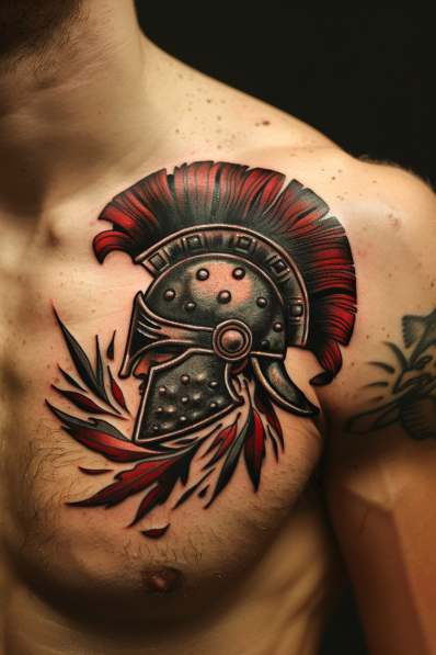 Spartan Helmet with Red Plume Chest Tattoo