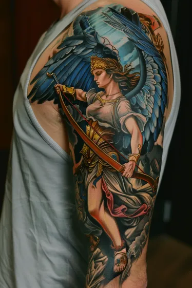 Angelic Archer Warrior Half Sleeve Tattoo