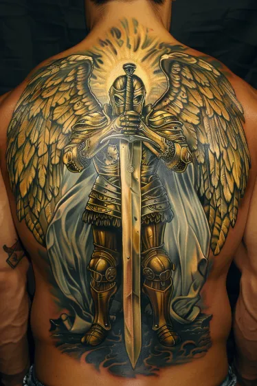 Armored Angel Warrior Full Back Tattoo
