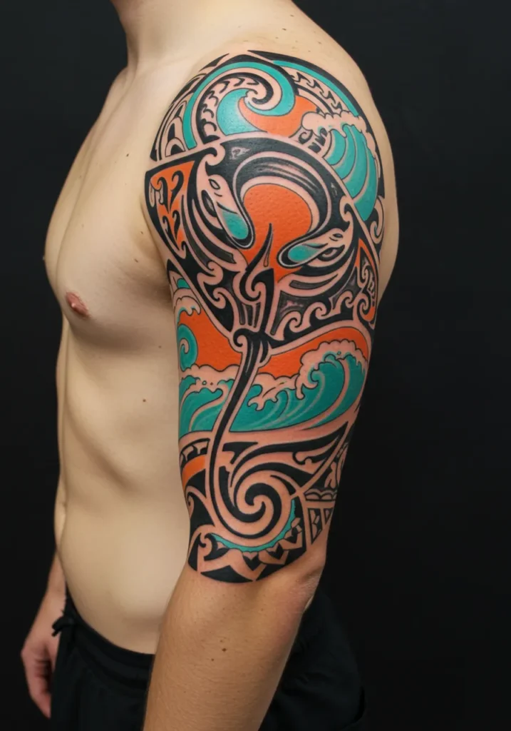 Polynesian Wave Inspired Half Sleeve Tattoo